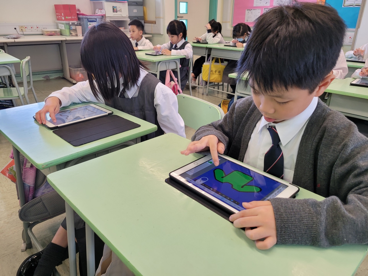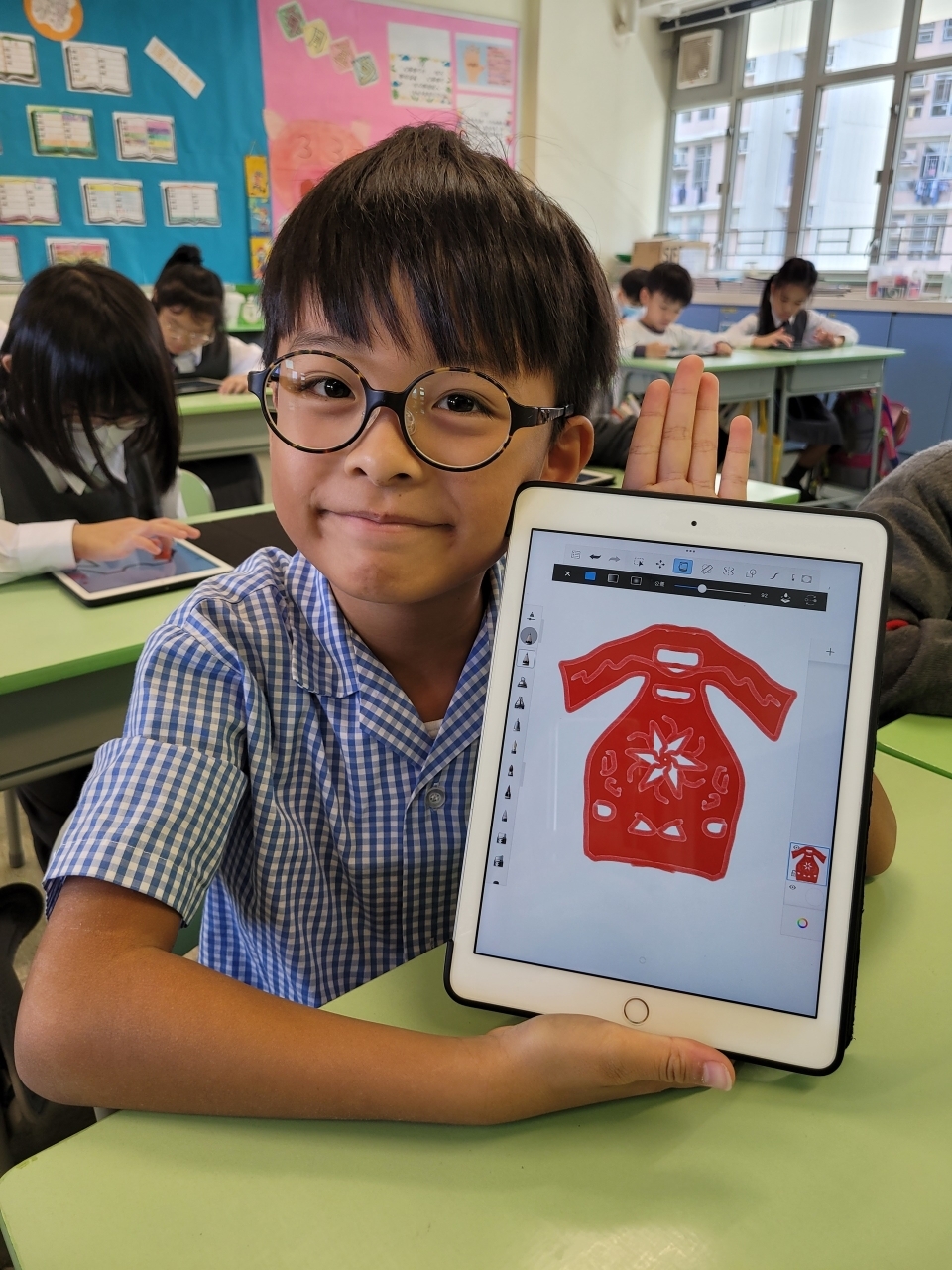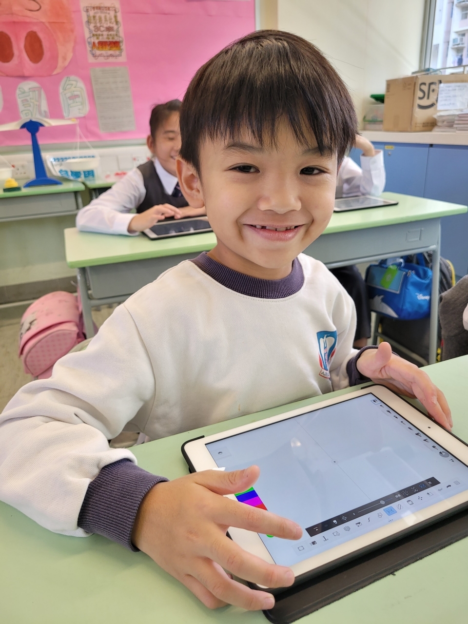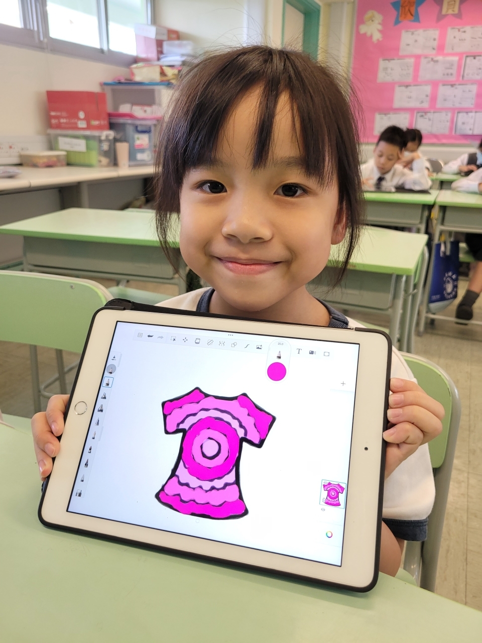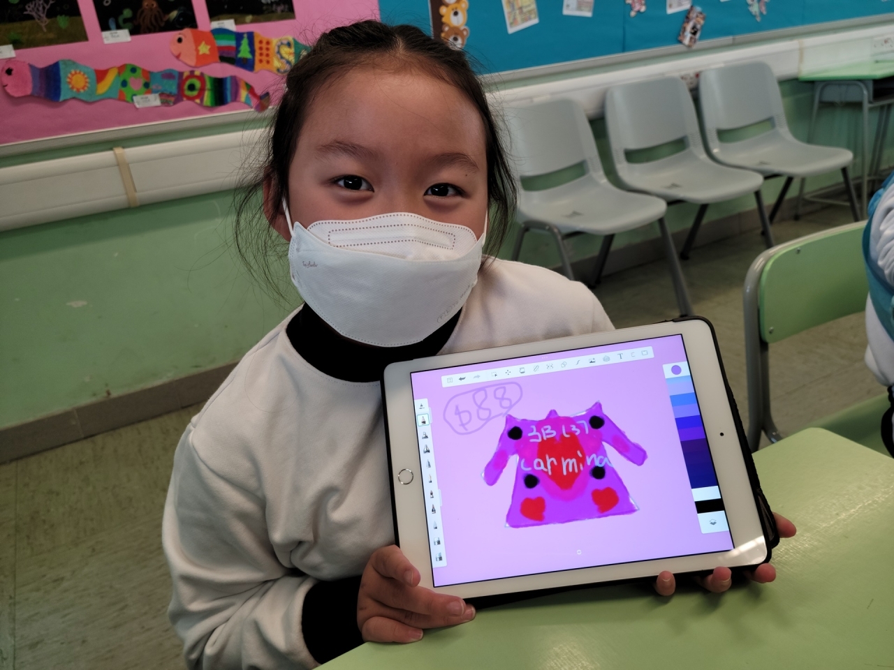 為了提升學生對繪畫的興趣,三年級的同學於上學期運用了電子學習工具Sketchbook進行創作,題目為「運動衣設計」。同學要在運動衣的正面及背面進行圖案設計。在繪畫的過程中,不但大大提高了他們的學習興趣,還增加了他們在設計方面的自信心呢﹗