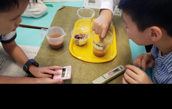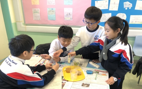 四年級的校本課程以「水與生活」為主題,目標是讓學生明白淡水資源的珍貴,了解香港的食水處理過程,最後透過動手操作,製作一個效能良好的濾水器。在教學過程中滲入公平測試的概念,教導學生如何搜集、紀錄及分析數據,應用設計循環的原則,製作一個濾水器。