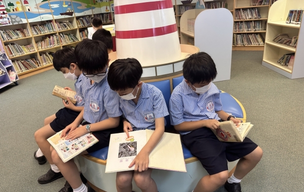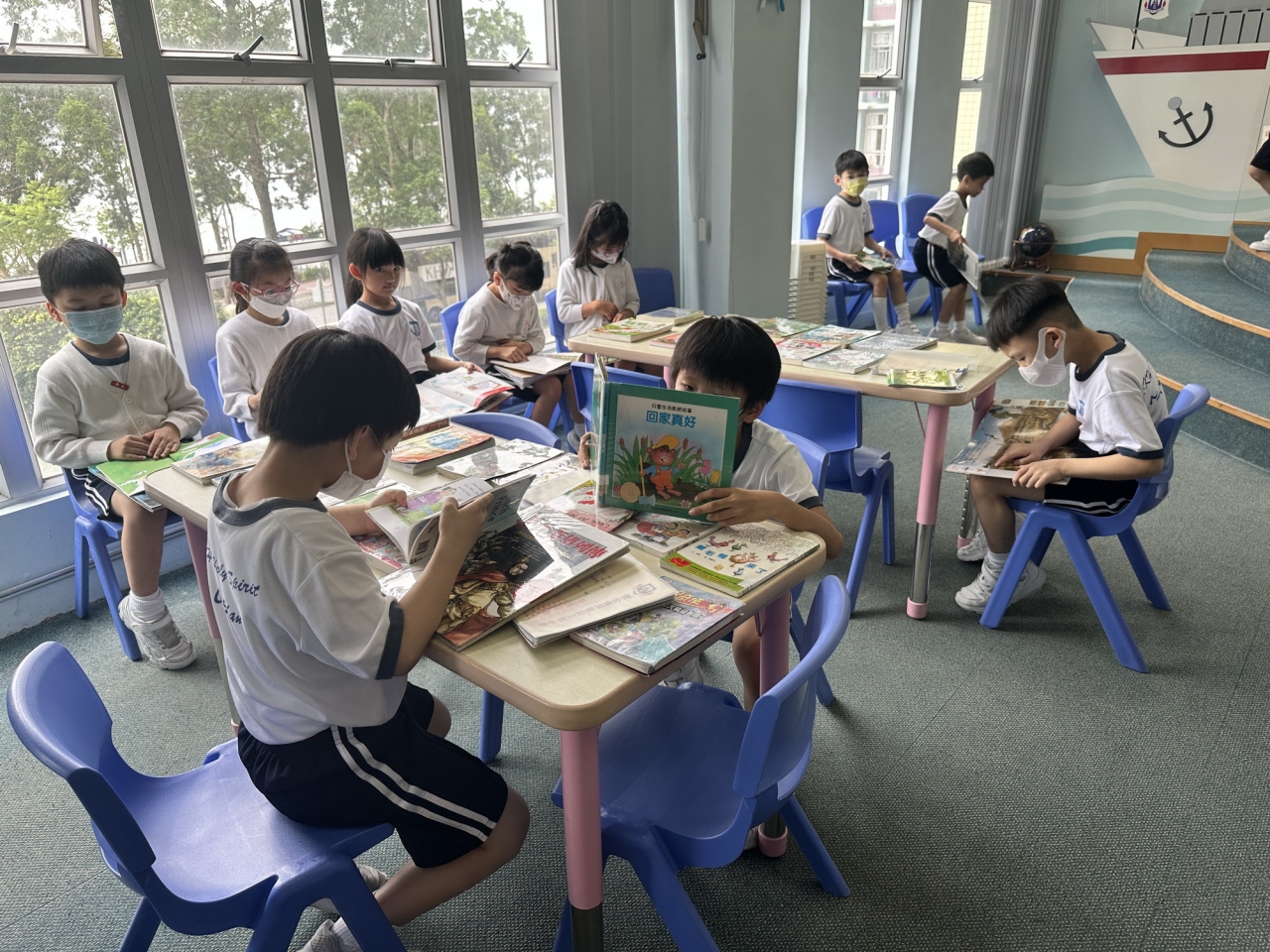 我們的圖書館環境舒適,提供約一萬本中、英文圖書供學生借閱,難怪同學都十分喜歡在圖書館「打書釘」。