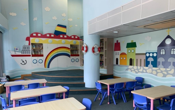 我校的圖書館以「乘風啟航」為主題,勉勵同學朝浩翰無涯的知識汪洋進發,自我掌舵,學會自主學習,探求不同學習領域的新知識。