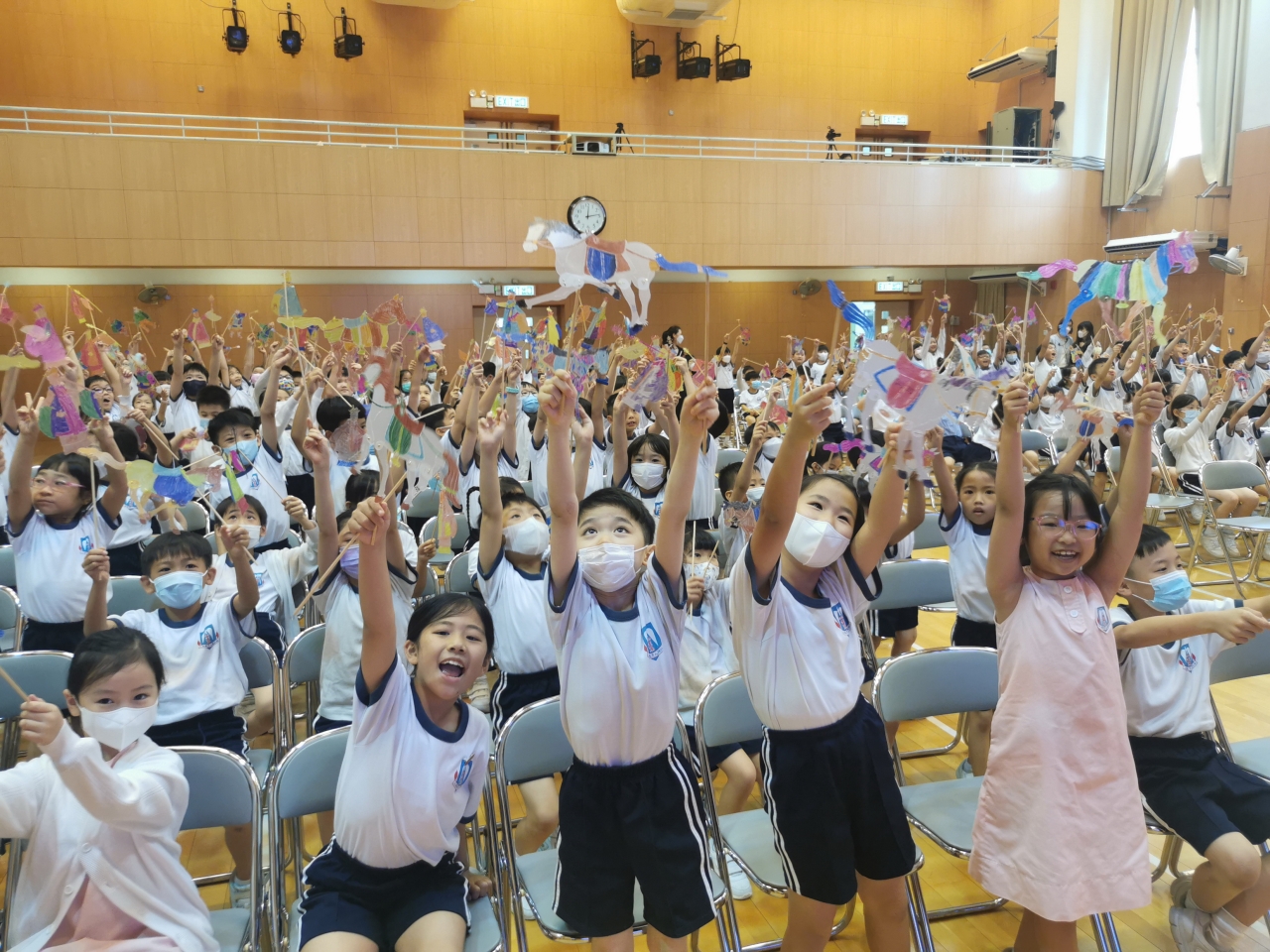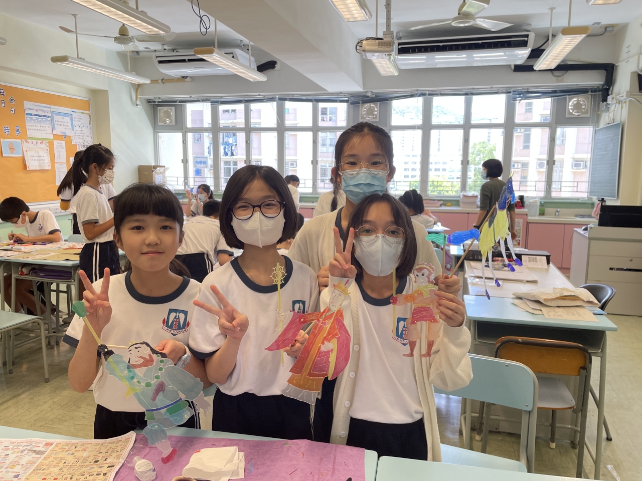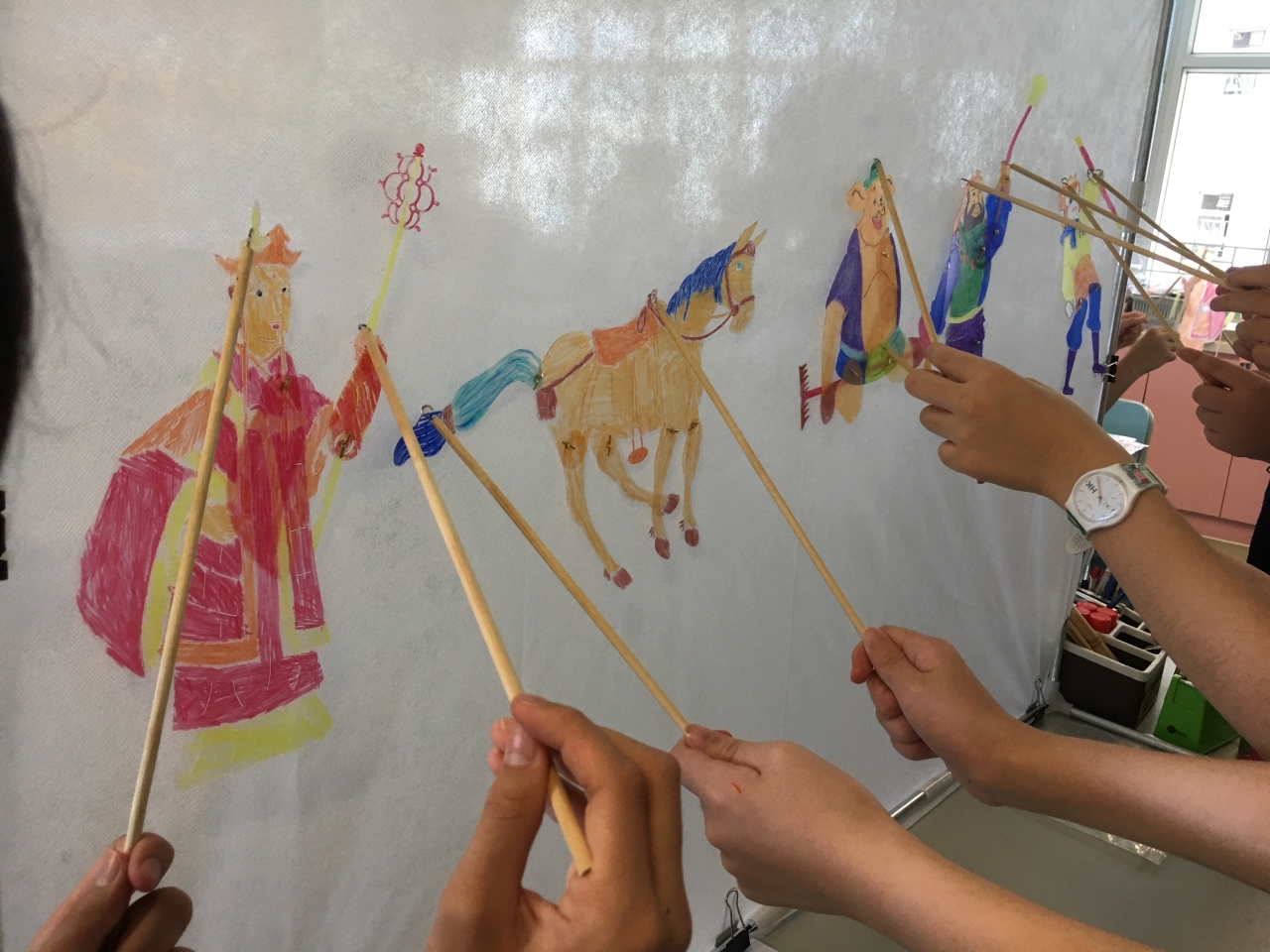 視藝科於試後活動時段舉行了「皮影舞台變!變!變!」的活動,讓學生認識中國傳統文化及藝術—皮影戲。藉此活動,學生不但能欣賞皮影戲的表演,還能學習如何製作和操控皮影戲偶進行表演。在活動中,學生按照《西遊記》中的五個角色進行分組,學習人物的動作,最後一起演釋《西遊記》當中的一些情節。當天,一、二年級的學生在禮堂由導師帶領進行活動;三至六年級的學生則在課室進行活動及演出。無論是在禮堂還是課室裏的學生,都表現得十分投入,他們表示這次活動富趣味,並能提升他們對中國文化藝術的認識和興趣。