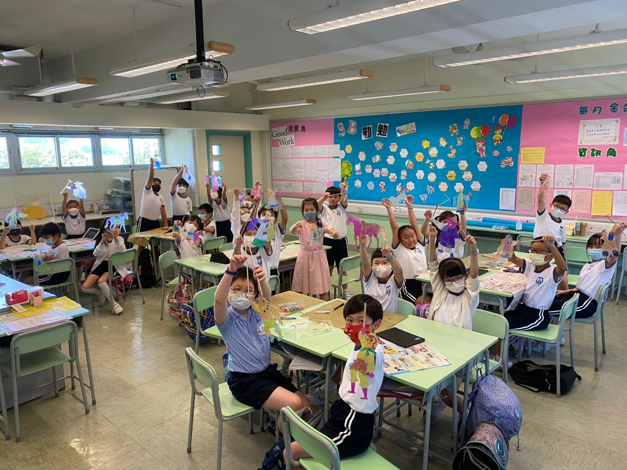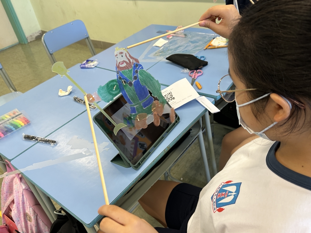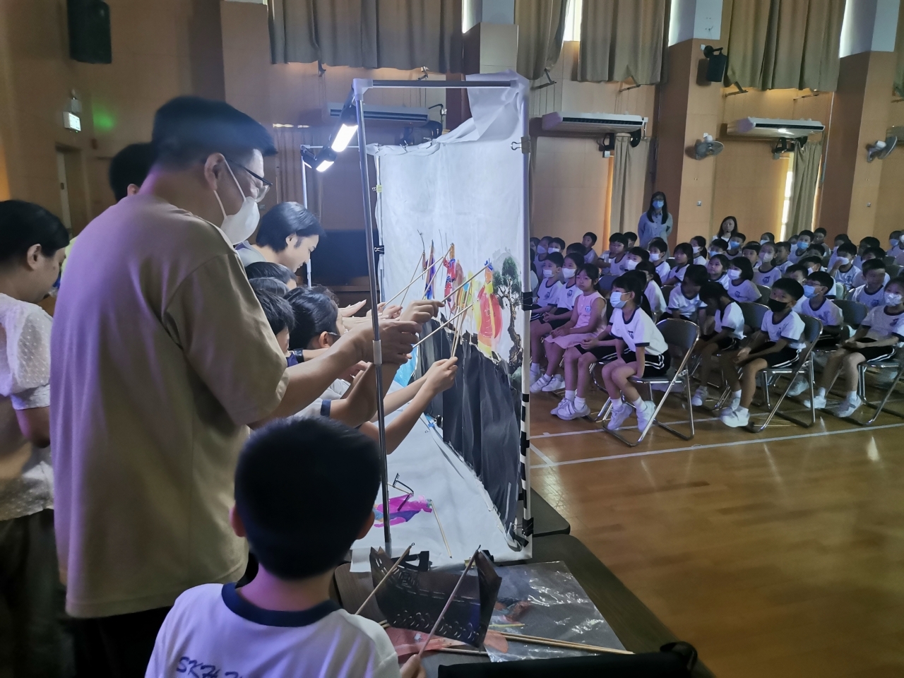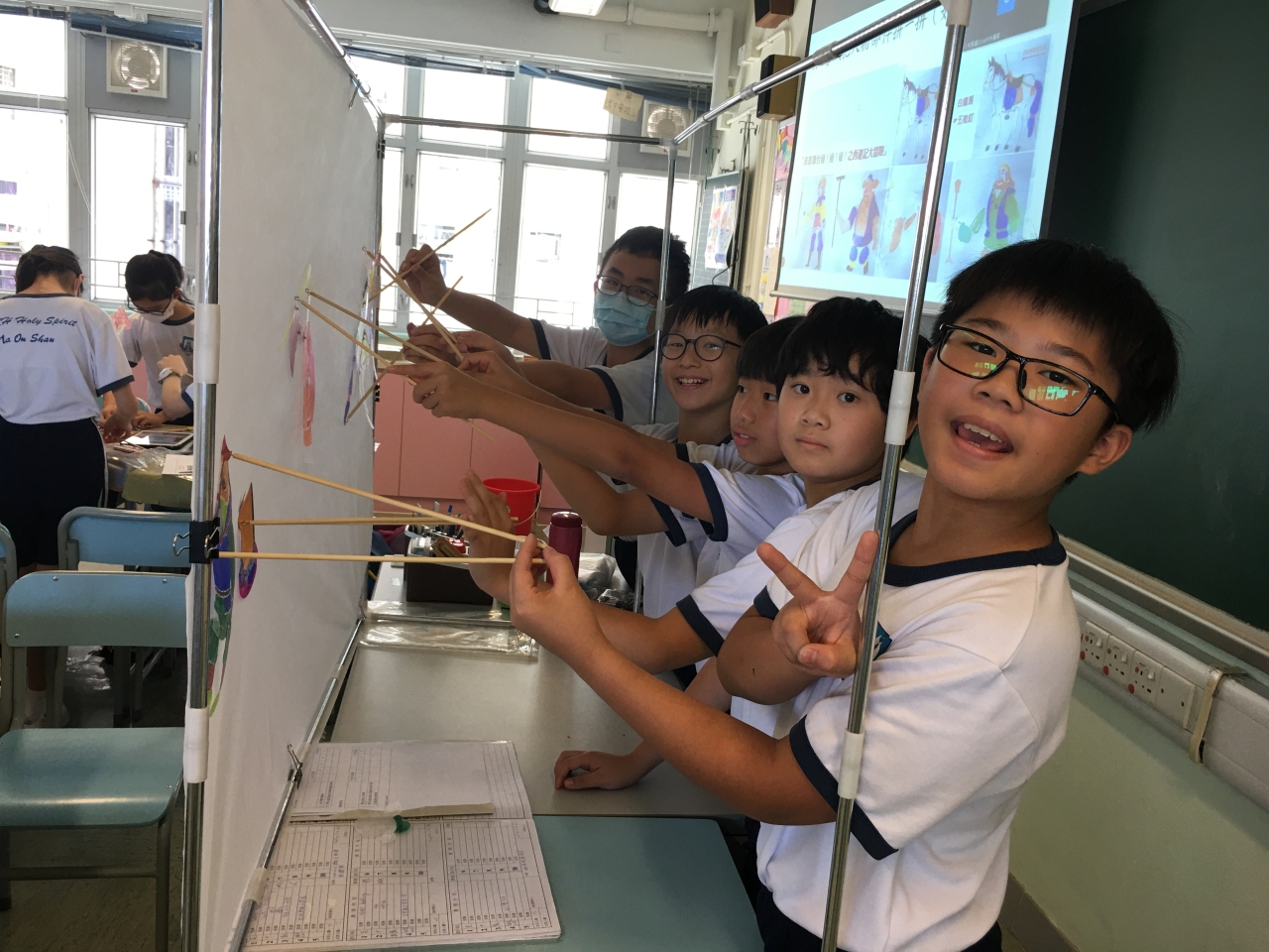 視藝科於試後活動時段舉行了「皮影舞台變!變!變!」的活動,讓學生認識中國傳統文化及藝術—皮影戲。藉此活動,學生不但能欣賞皮影戲的表演,還能學習如何製作和操控皮影戲偶進行表演。在活動中,學生按照《西遊記》中的五個角色進行分組,學習人物的動作,最後一起演釋《西遊記》當中的一些情節。當天,一、二年級的學生在禮堂由導師帶領進行活動;三至六年級的學生則在課室進行活動及演出。無論是在禮堂還是課室裏的學生,都表現得十分投入,他們表示這次活動富趣味,並能提升他們對中國文化藝術的認識和興趣。