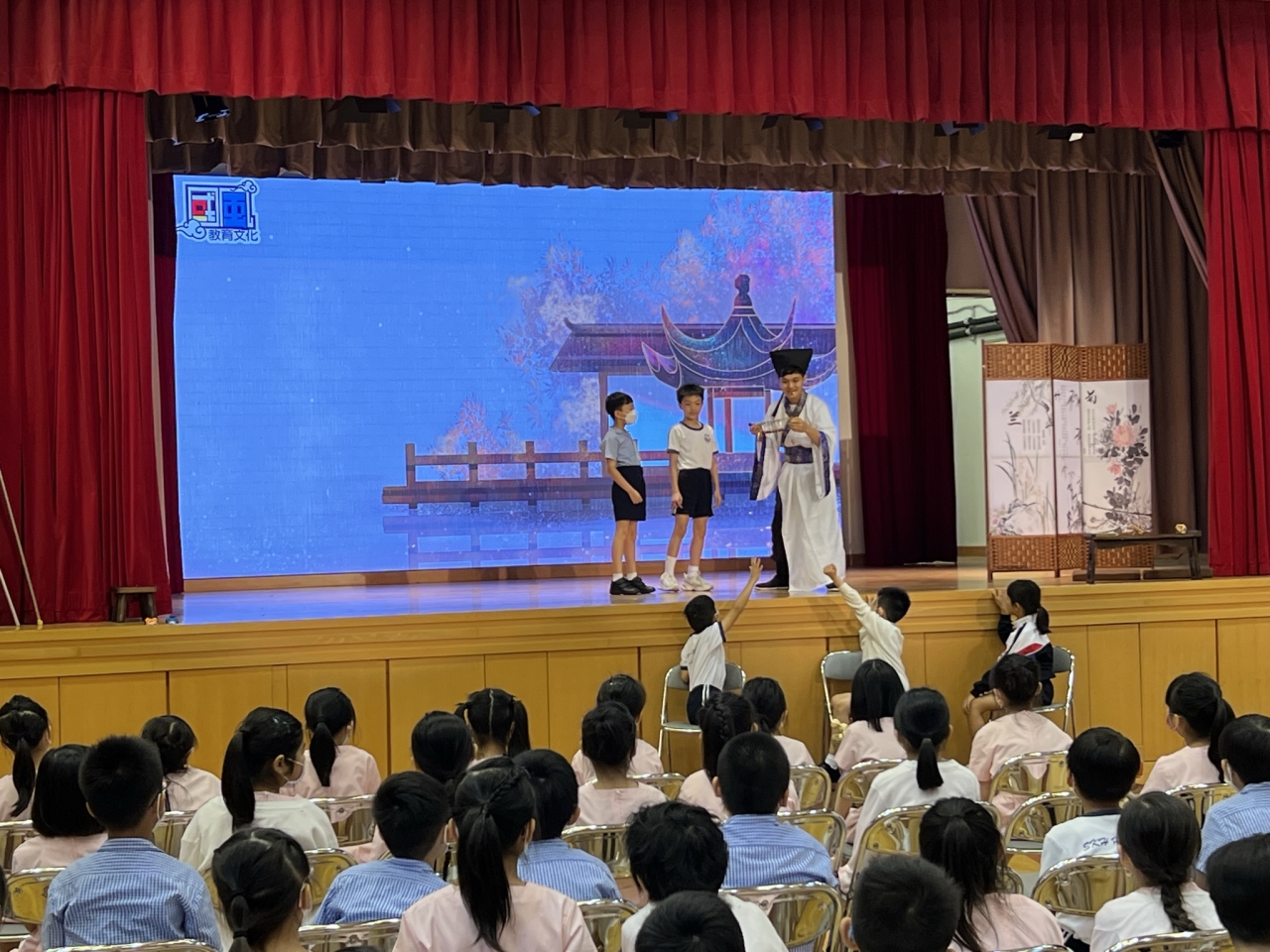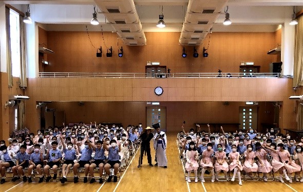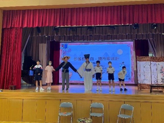 為增進學生對中華文化的認識,培養正面的價值觀,在下學期試後活動時段,中文科舉行了兩場「步搖悟李白,鐵杵磨成針」話劇欣賞活動。學生透過互動劇場與主角一起回到唐代,體驗鐵杵磨成針的故事,見證李白由懶惰變得勤勞,最後成為著名詩人。活動中,同學們表現投入,踴躍回答問題,並與主持人一起唱歌跳舞,氣氛熱烈,更從中明白了勤勞的意義。
