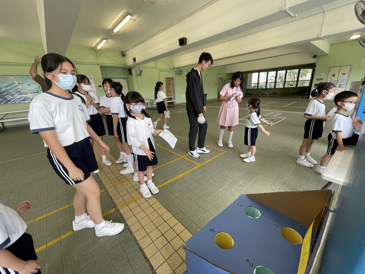 The English Smarties and NET teachers bring energy and enthusiasm, beckoning students to their booths. Students happily line up to participate, eager to showcase their English skills while playing interactive games.